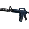 The body of the rifle is adorned with a pattern imitating carbon fiber. The back part of the buttstock and the scope are painted black. The design is complemented by bright accents in the form of wavy red lines.