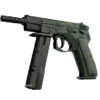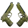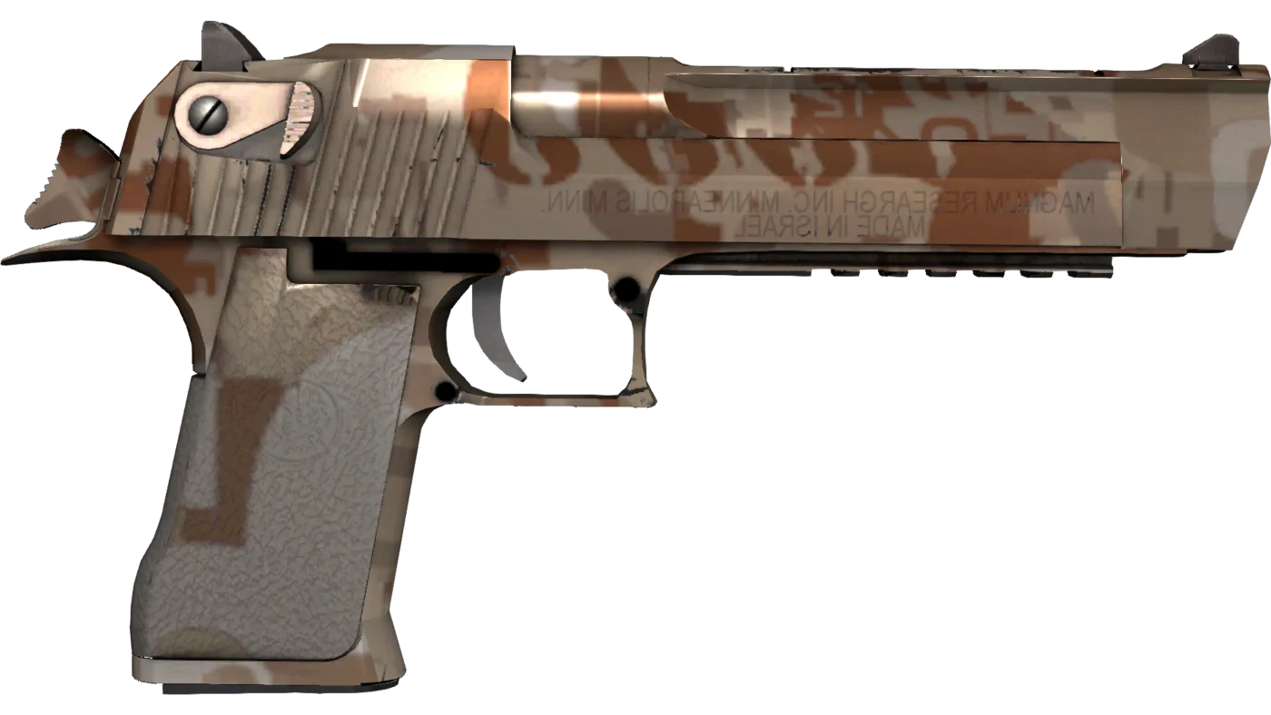 The entire body of the pistol is adorned with a pattern in the form of randomly arranged different-sized numbers. The skin’s color scheme includes various shades of beige, orange, and brown. The pattern is applied using metallic paints.