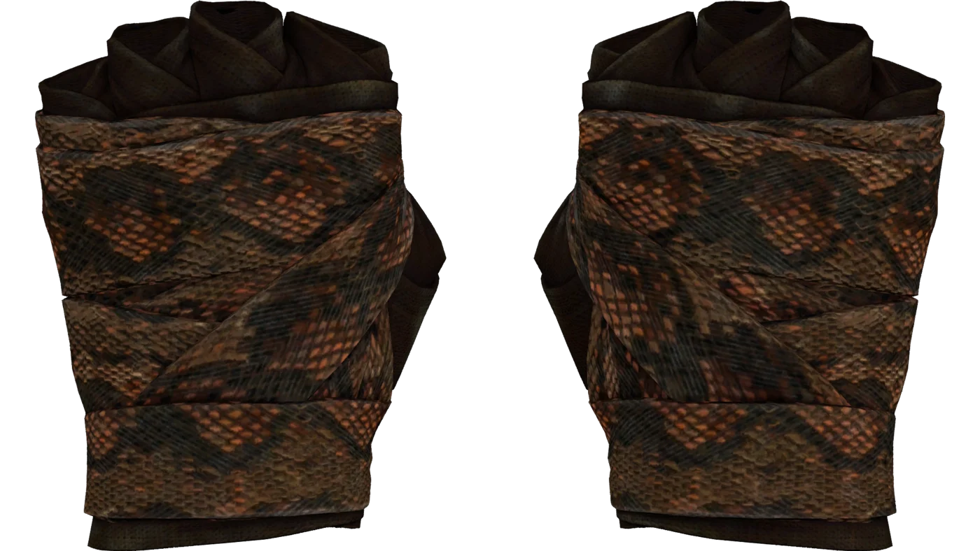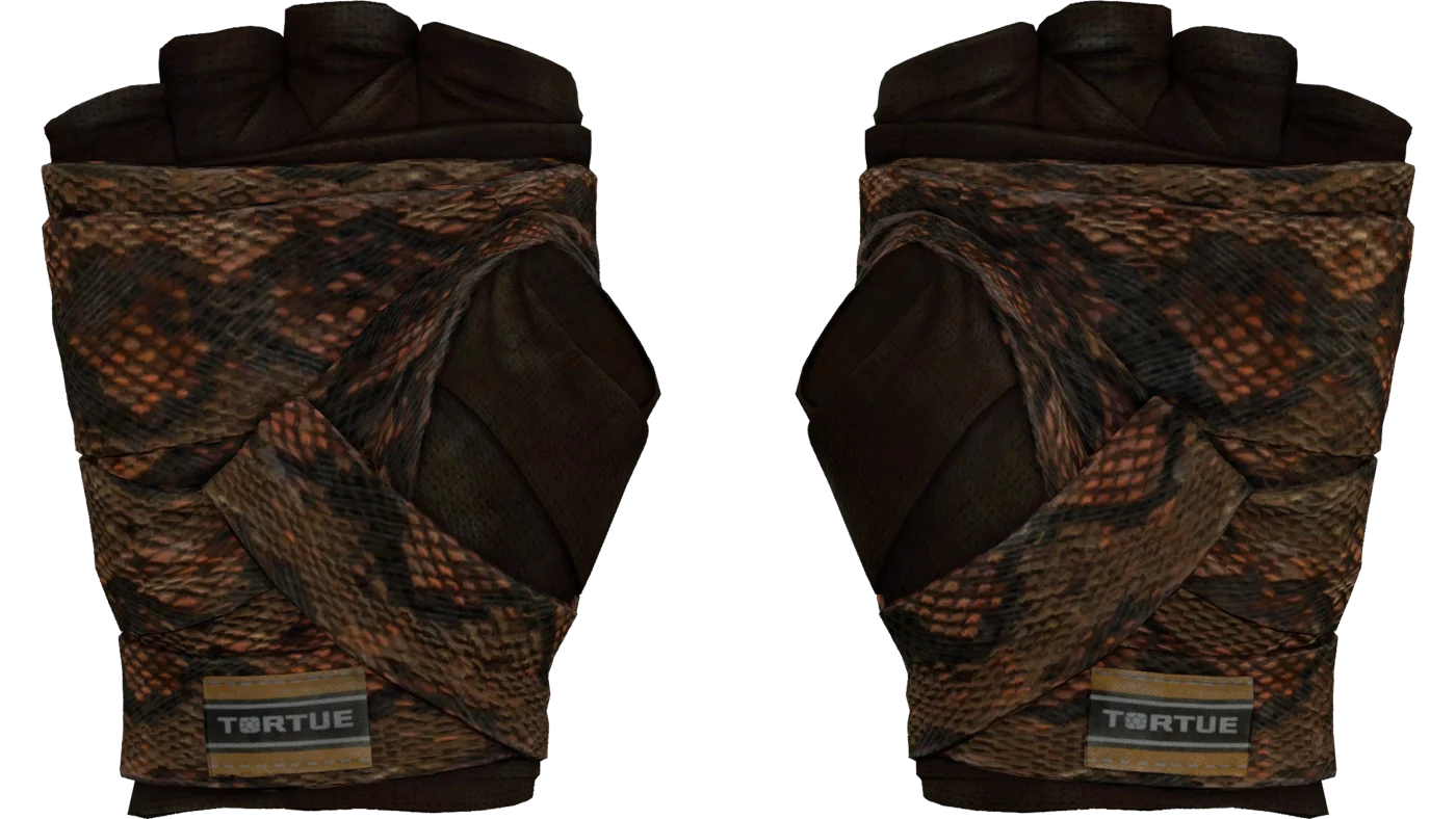 The inner layer of the warps is made of brown fabric. The outer layer is made of a canvas tape with an animalistic pattern imitating python skin. The design is made in beige and brown colors.
