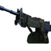 A strong open-area LMG, the M249 is the perfect choice for players willing to trade a slow fire rate for increased accuracy and a high ammo capacity. It has been custom painted using teal-colored desert camouflage and environments as inspiration.