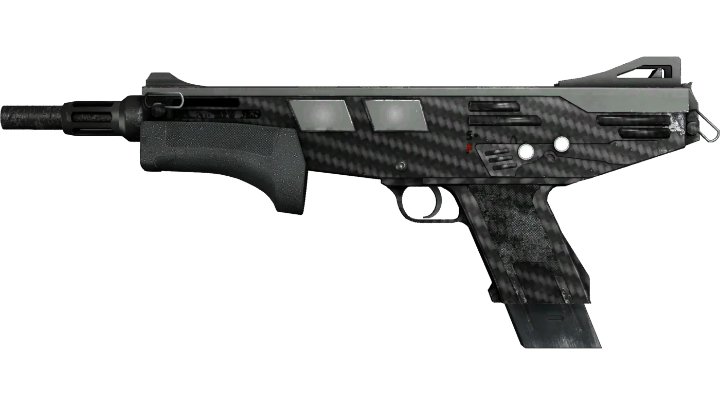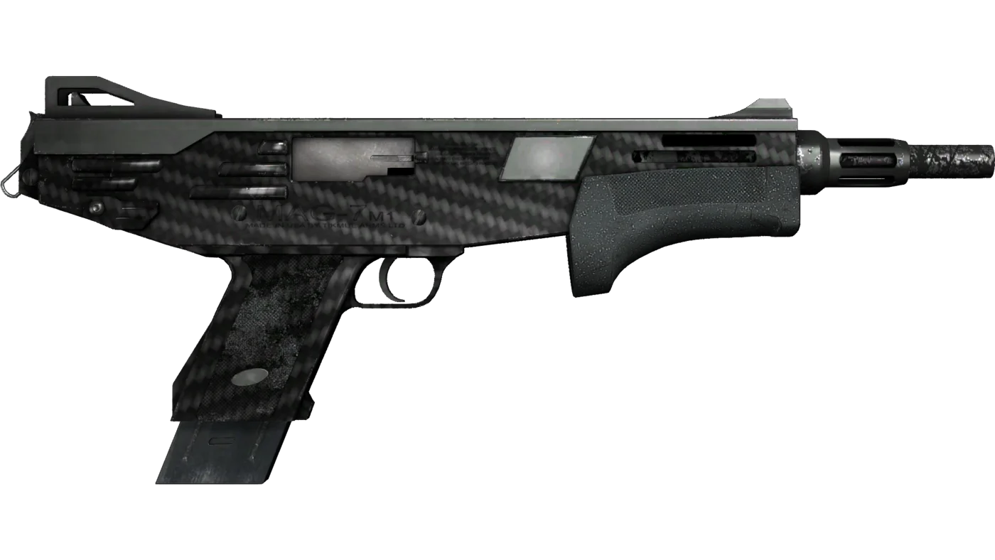 The body of the shotgun is adorned with a pattern that imitates the texture of a carbon fiber coating. The barrel, handguard, magazine, and several small parts of the weapon are not painted.
