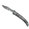 This marble-enamel-handled flip knife conceals a small but viciously tapered blade. It has been spray-painted with a tape mask pattern in a night ops color scheme.