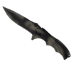 This ergonomic tactical hunting lock-blade knife features composite handle inserts and a broad, sturdy blade, useful for cutting and prying apart material. It has been given a forced patina using lemon and mustard dripped onto the surface.