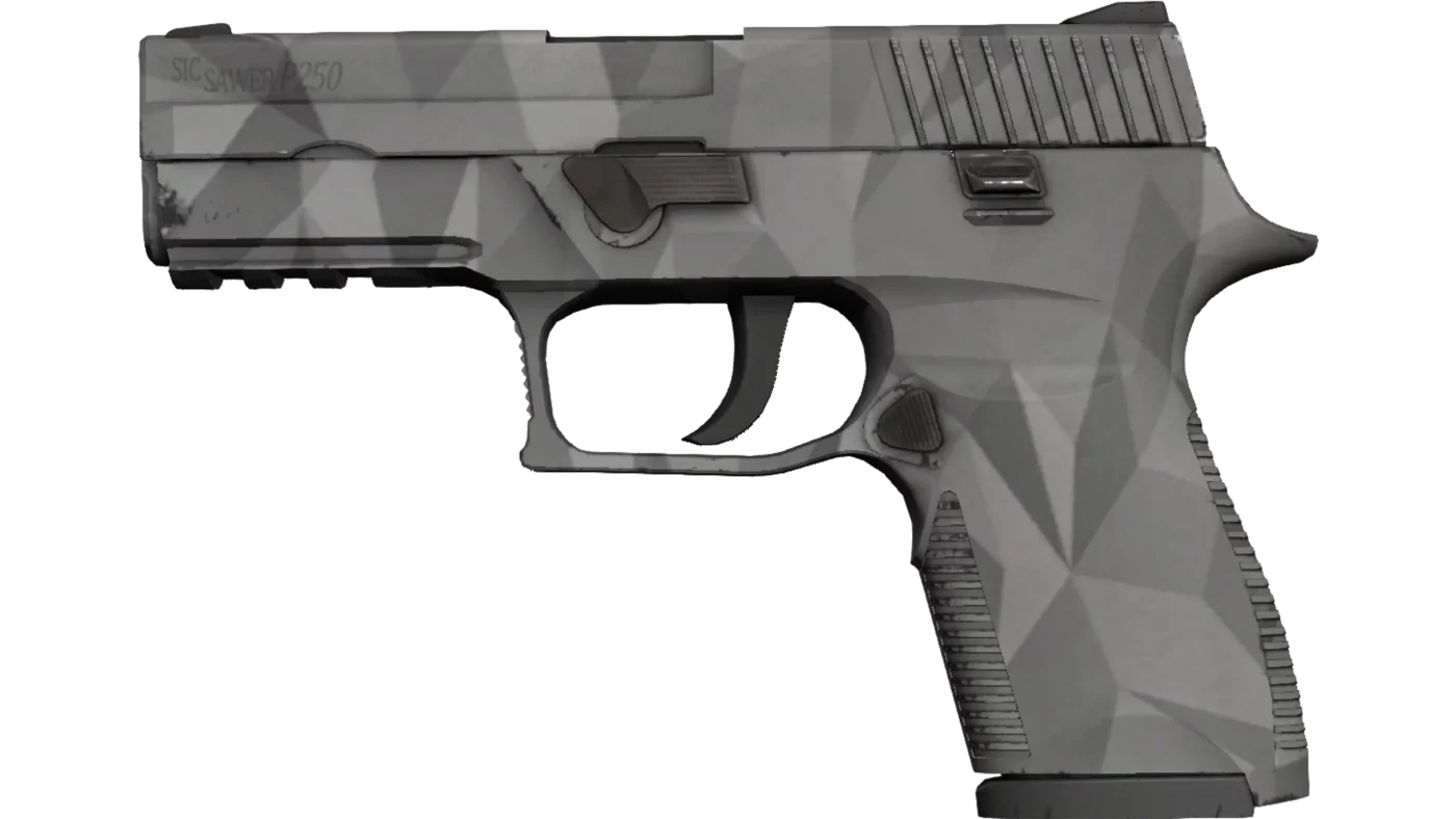 The body of the pistol is adorned with a geometric pattern in various shades of gray. Individual