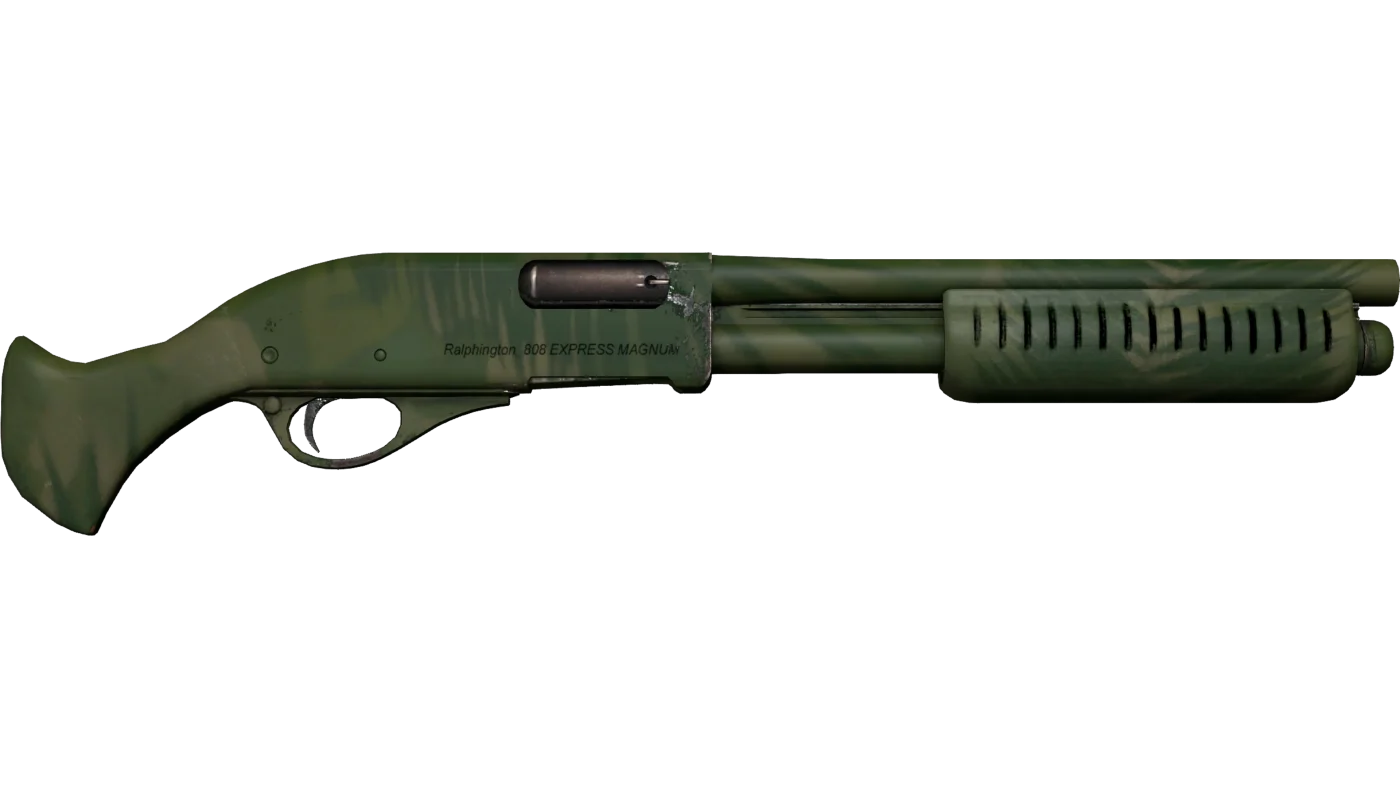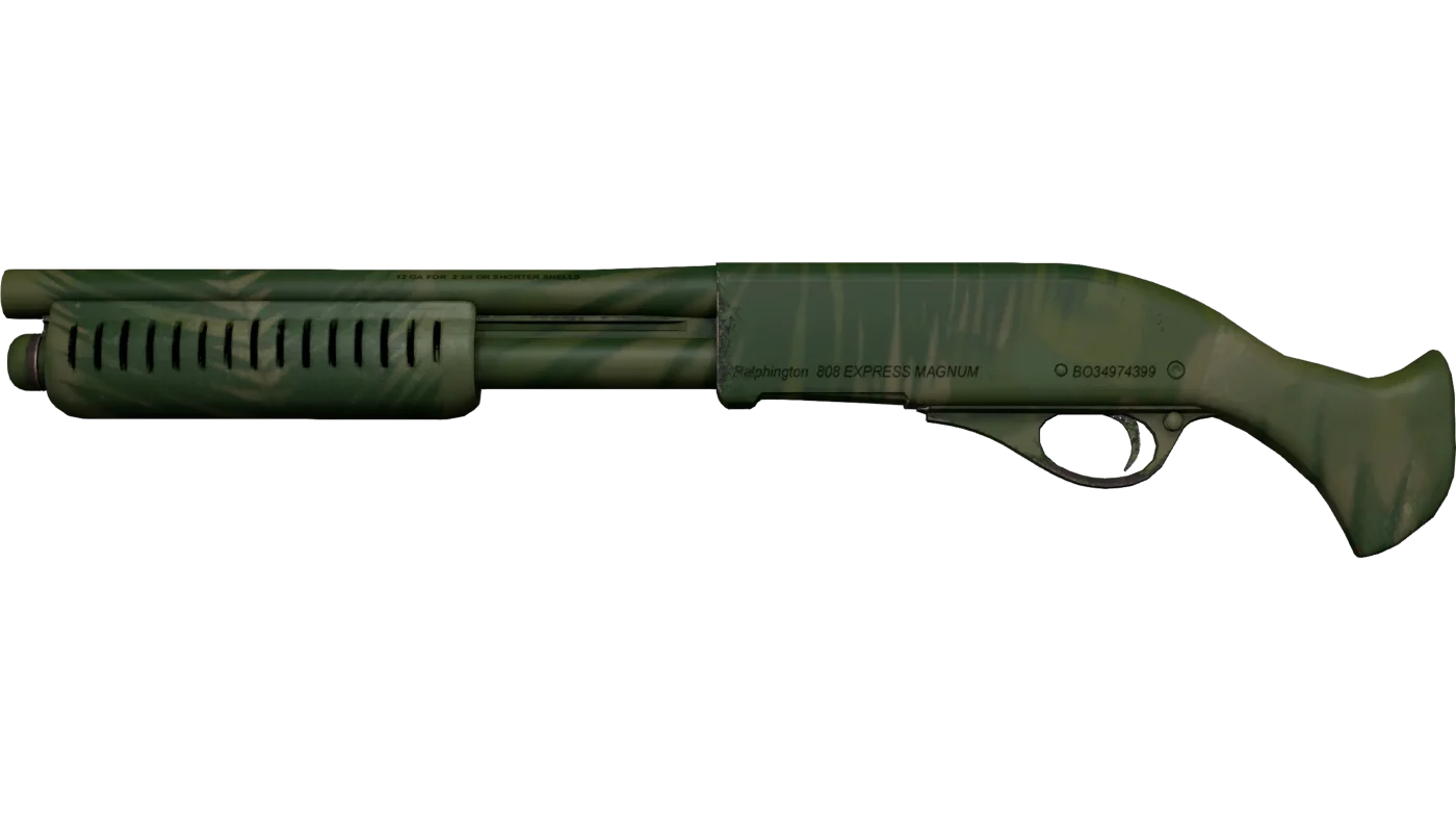 The entire body of the submachine gun is spray-painted using branches as a stencil. The color scheme of the skin uses pale shades of green and beige. The belt is made in khaki color.