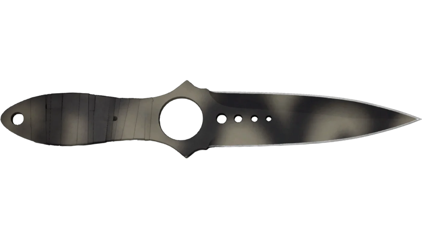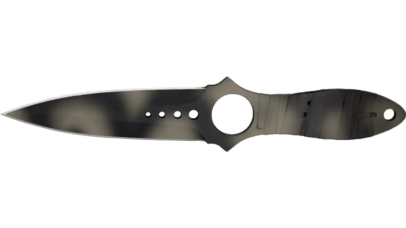 The entire body of Skeleton Knife | Scorched, including the handle, is spray-painted in various shades of gray.
