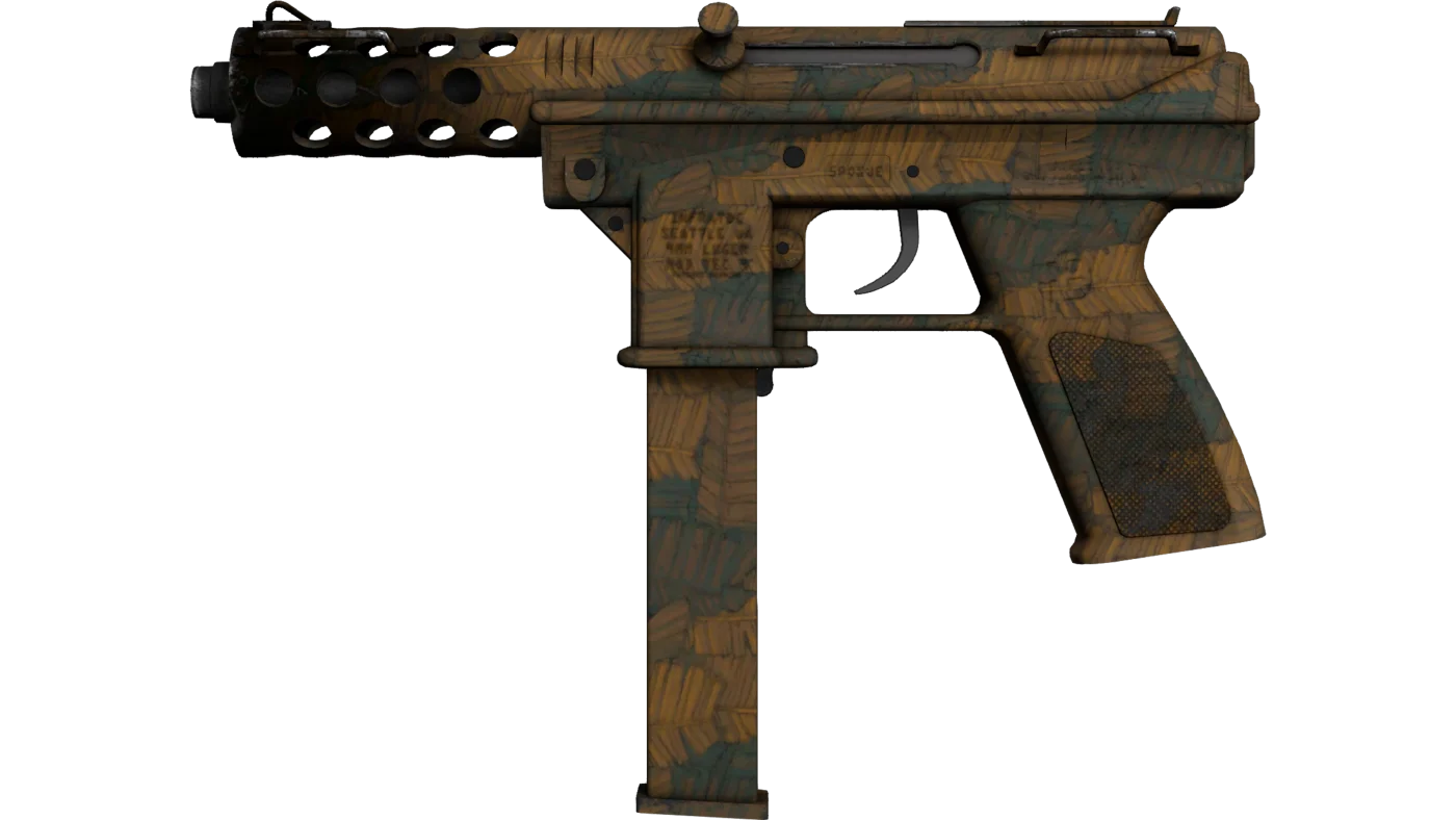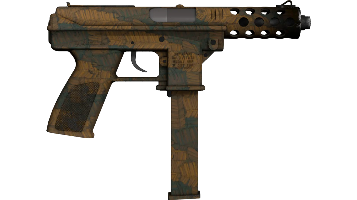 The entire body of the pistol is adorned with a pattern of banana leaves made in various shades of brown and green.