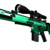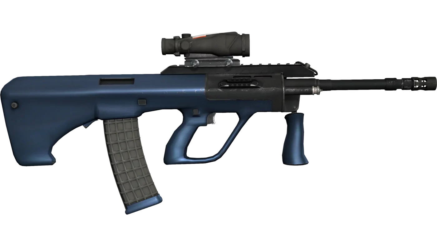 A skin tem um design minimalista. O corpo do rifle é pintado de azul cromado. A revista é feita em cinza. O cano e a luneta não são pintados.