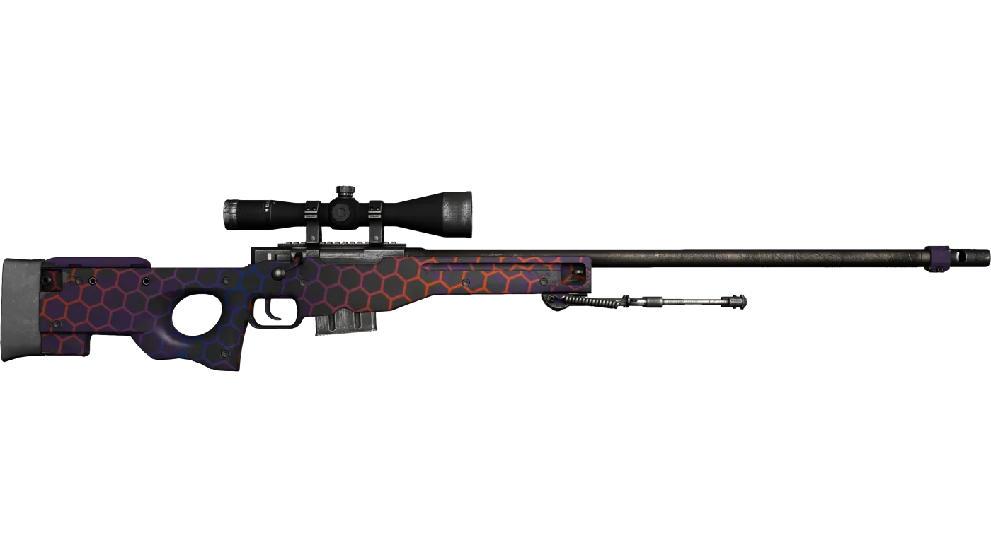 O corpo do rifle é pintado de forma desigual em preto e roxo e adornado com um padrão feito na forma de uma grade hexagonal semelhante a favos de mel. A grade é pintada com um gradiente incluindo laranja, azul e roxo. Pequenas partes individuais do rifle são pintadas de roxo sólido.