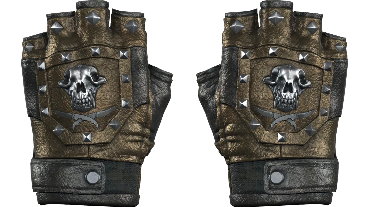 As luvas são feitas de couro tingido de prata e bronze. O design é complementado com rebites prateados e os logotipos da Operação Bloodhound.