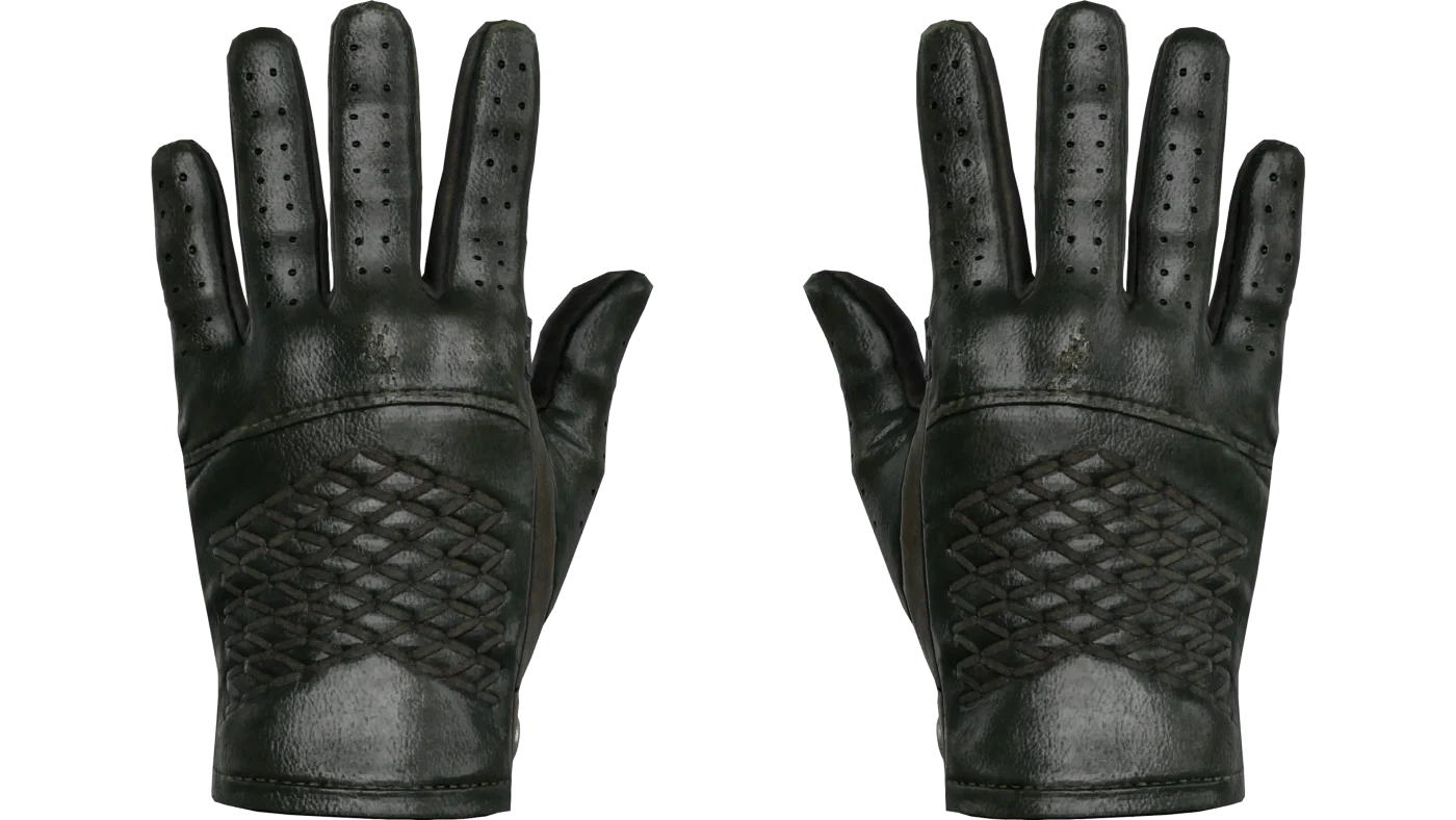 A parte superior das luvas é feita de couro verde-escuro e adornada com um padrão xadrez de camurça cinza-esverdeada. A parte da palma é feita de camurça cinza-esverdeada e reforçada com inserções texturizadas cinza.