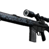 A G3SG1 é das armas mais caras do jogo e reduz consideravelmente a mobilidade do seu portador, mas tem um ritmo de disparo elevado comparado com as outras espingardas sniper. A base preta desta arma em particular foi coberta por painéis de madeira escura.