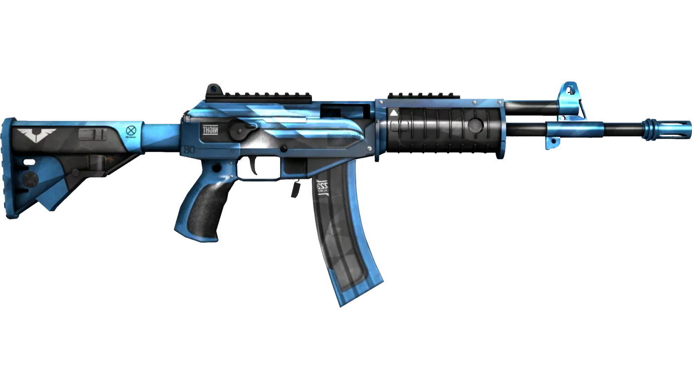 Todo o corpo da metralhadora é adornado com um padrão geométrico de formas e listras de tamanhos diferentes. A parte principal do padrão é pintada em vários tons de azul, as demais partes são feitas em um esquema de cores cinza. O design da skin é complementado por detalhes na forma de vários pictogramas e inscrições.