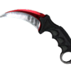 A karambit é uma faca vinda da Indonésia, cuja forma curva foi inspirada nas garras dos tigres, e faz parte da tradição das artes marciais de "silat" do Sudeste Asiático. A faca é tipicamente empunhada para baixo, com o dedo indicador no aro. Esta arma em particular foi pintada com um padrão de nós.