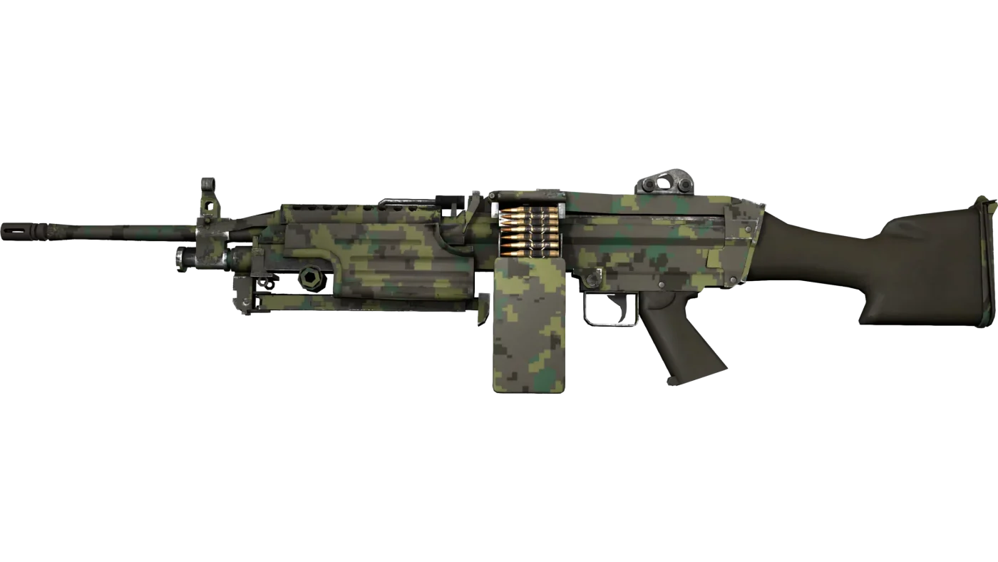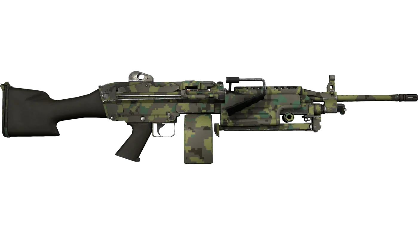 A alça e a coronha são pintadas de marrom sólido. O resto do corpo é adornado com um padrão disruptivo digital pintado em vários tons de verde e marrom. A mira traseira e as partes individuais da arma não são pintadas.