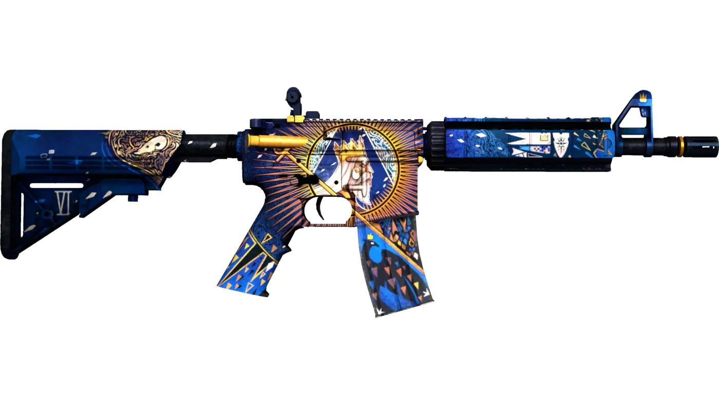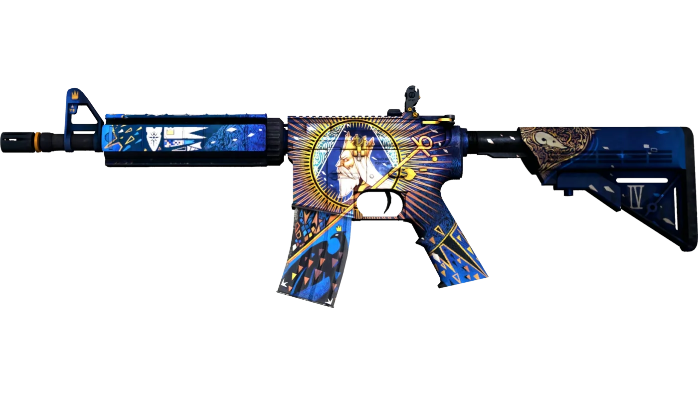 O corpo do rifle é pintado em vários tons de azul. A parte central da arma é ocupada skin imagem de um homem de cabelos grisalhos com uma coroa e um cetro de ouro. A imagem é cercada por um padrão circular semelhante aos raios solares. A revista é enfeitada com a imagem de um melro com uma coroa na cabeça. O desenho da skin é complementado por um grande número de pequenas imagens como bandeiras, brasões, formas geométricas coloridas, bem como o número latino IV simbolizando o número da carta no baralho de Tarô. Uma parte da coronha é adornada com um padrão de ouro abstrato.