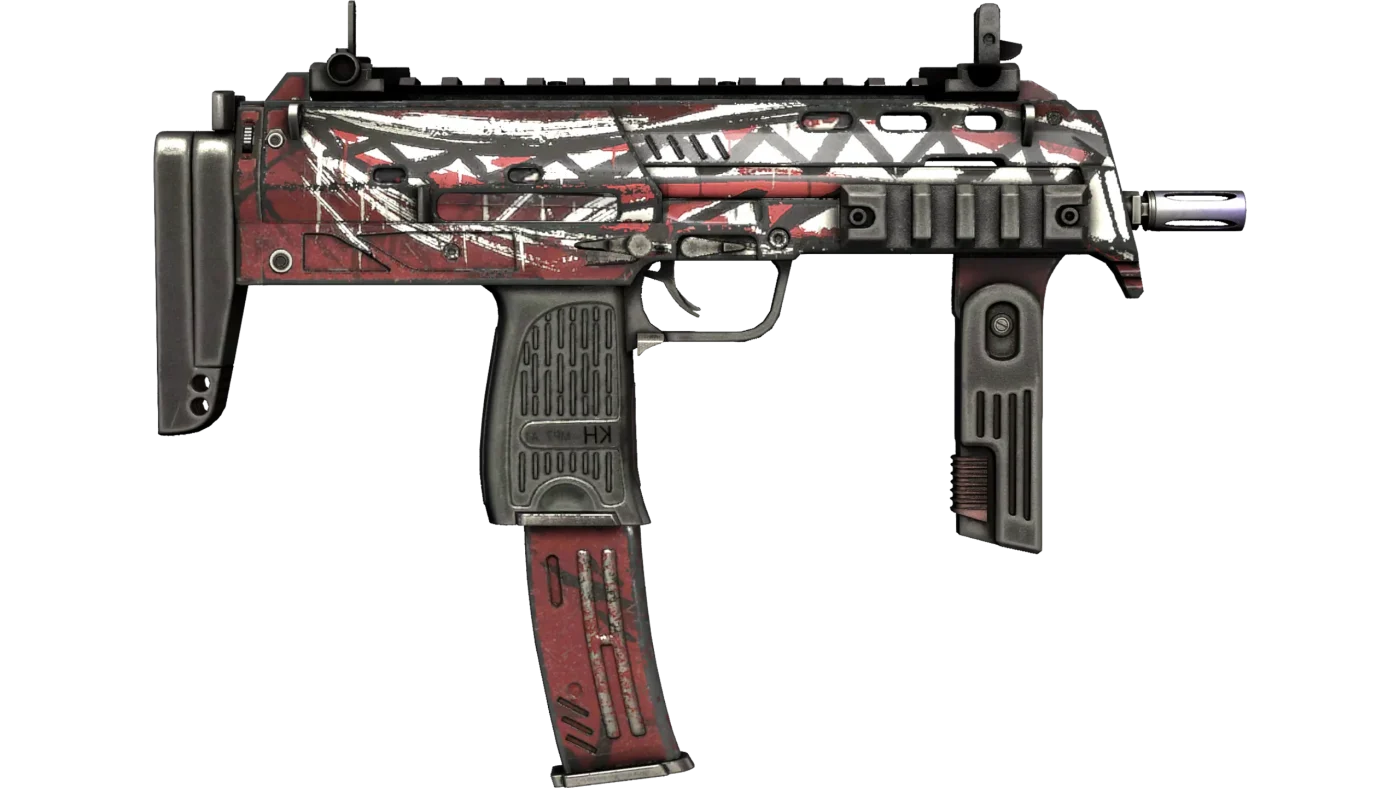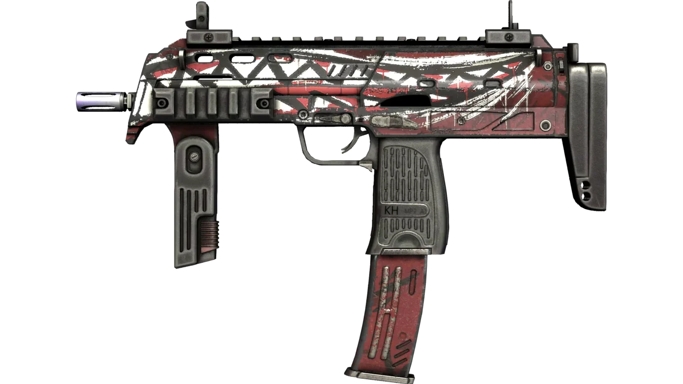 O receptor e o carregador são pintados de maneira desigual em vermelho escuro. O receptor é adornado com uma imagem em preto e branco que lembra um sorriso de animal pintado com pinceladas. O barril é pintado com um gradiente roxo-prateado. As alças, a coronha e partes individuais do corpo não são pintadas.
