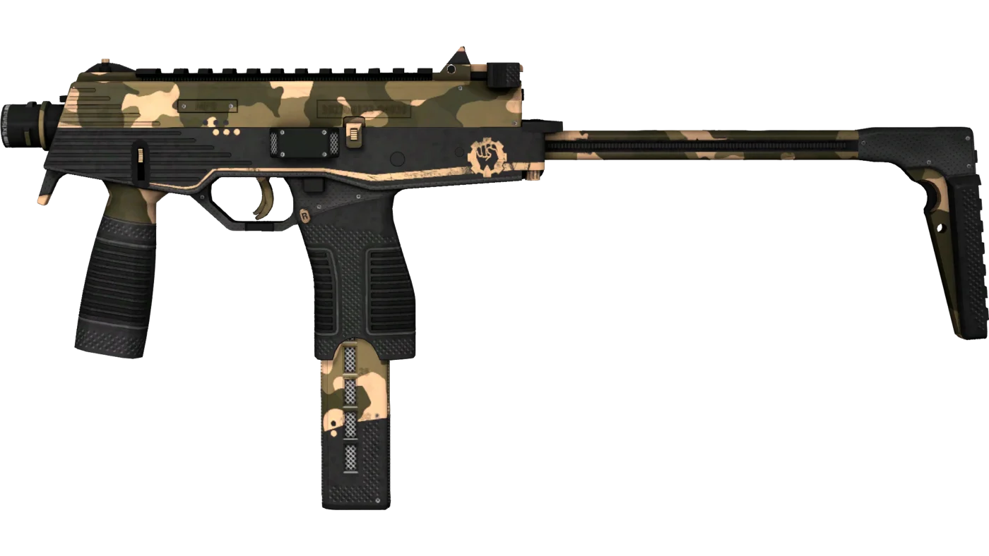 O corpo preto do SMG é parcialmente adornado com um padrão de camuflagem pintado em bege e cáqui. O design é complementado por uma faixa bege e um logotipo na forma de um punho cerrado em uma engrenagem. Partes individuais da arma são decoradas com inserções texturizadas pretas. A revista e o receptor são complementados com pequenas inserções de malha de metal.