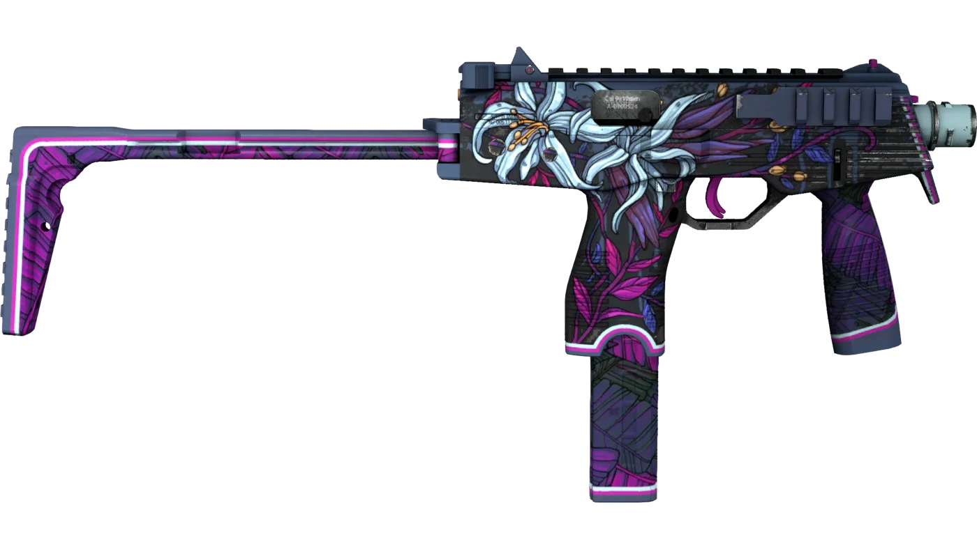 O corpo preto e cinza da metralhadora é adornado com imagens de lírios brancos e folhas de bananeira e complementado por detalhes na forma de linhas brancas e rosa. O esquema de cores do padrão usa vários tons de azul, roxo e rosa.