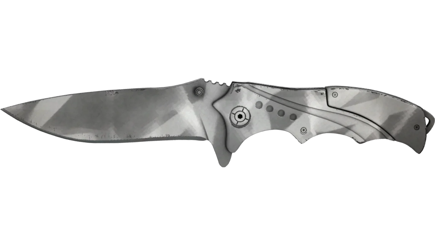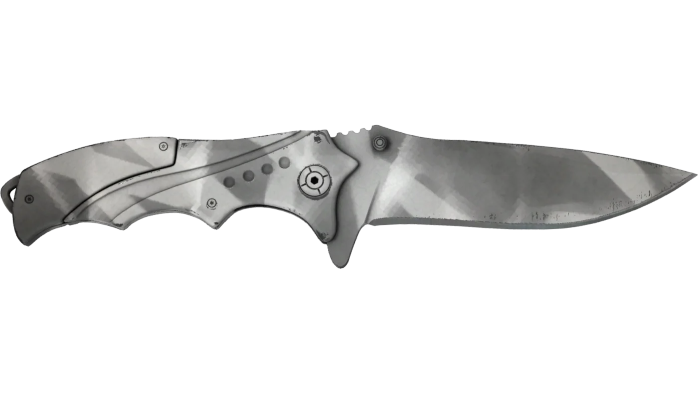 O corpo inteiro da faca, incluindo o cabo, é pintado com spray em várias tonalidades de cinza. O padrão é aplicado através de uma trama de fita adesiva usada como estêncil.