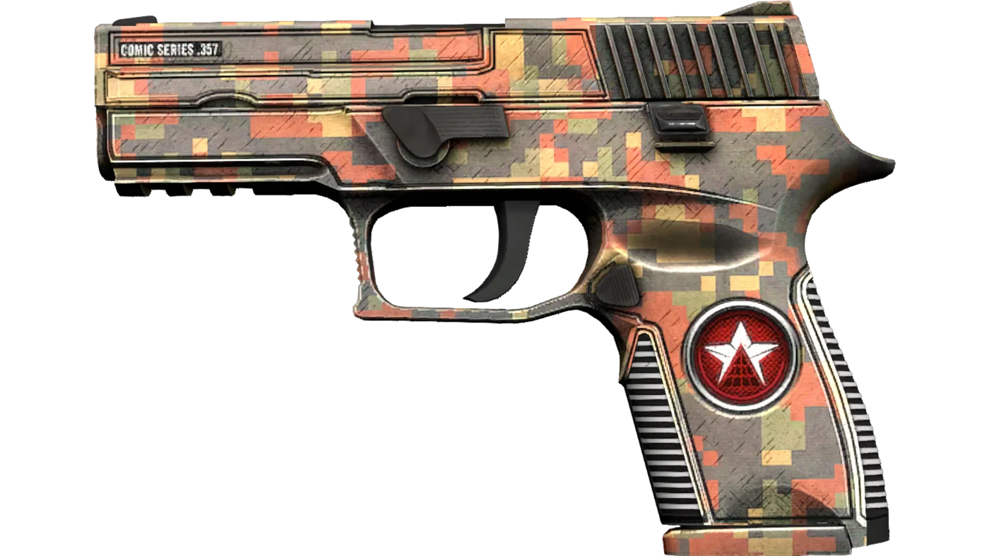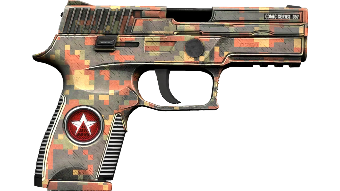 Todo o corpo da pistola é adornado com um padrão geométrico que lembra a camuflagem de pixels. O esquema de cores do padrão usa vários tons de cinza, laranja e amarelo. A alça é adornada com um logotipo na forma de uma estrela vermelha e branca.