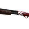 Esta clássica caçadeira de cano serrado causa imenso dano a curtas distâncias, mas com a sua baixa precisão, elevada dispersão e ritmo lento dos disparos, é melhor que tenhas boa pontaria. Esta arma em particular foi lacrada de preto e dourado e decorada com motivos florais.