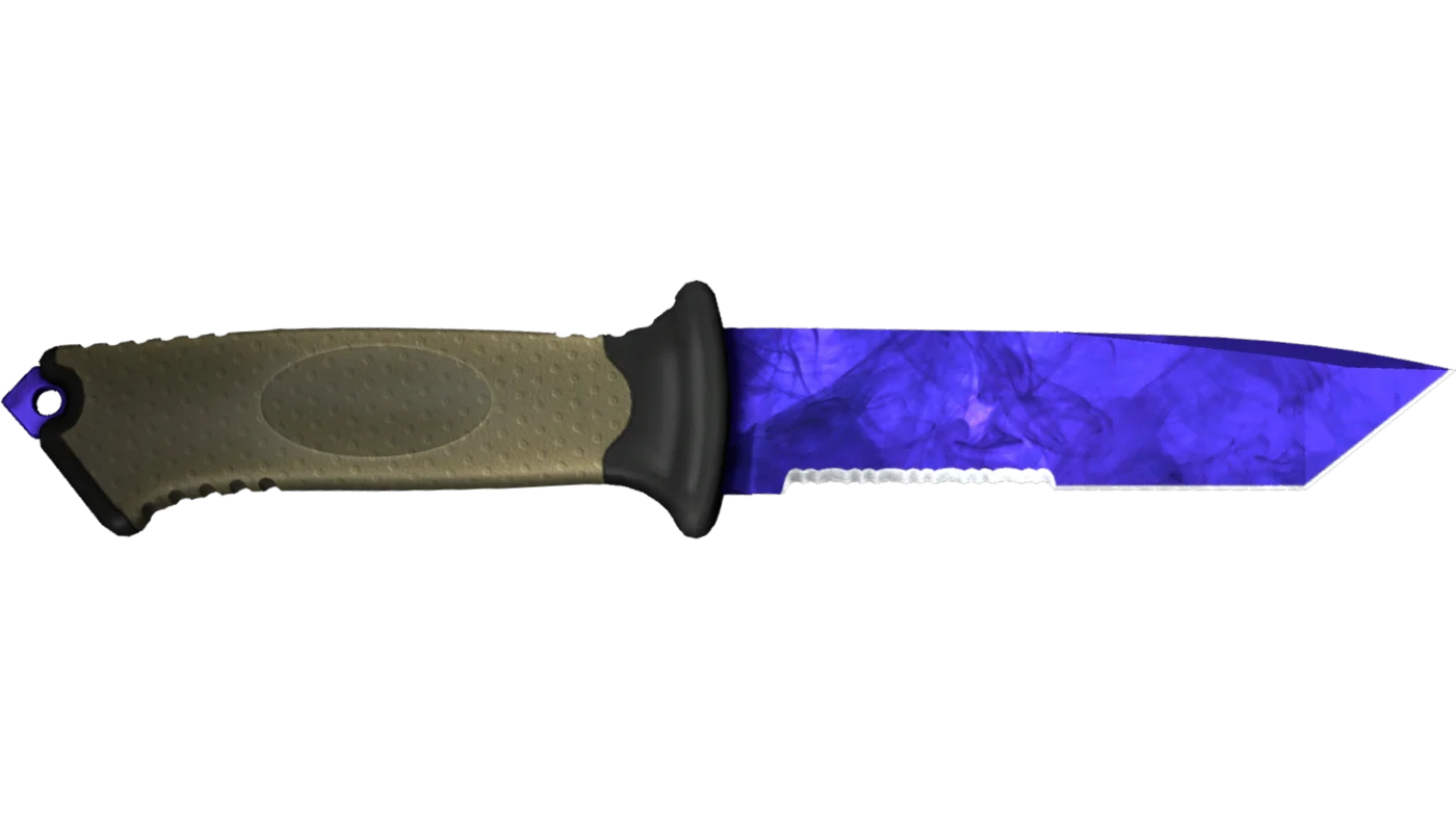 A lâmina da faca é pintada com tintas metálicas e adornada com um padrão de linhas onduladas translúcidas que lembram fumaça. A paleta de cores da skin inclui vários tons de azul criando transições gradientes. O cabo permanece sem pintura.